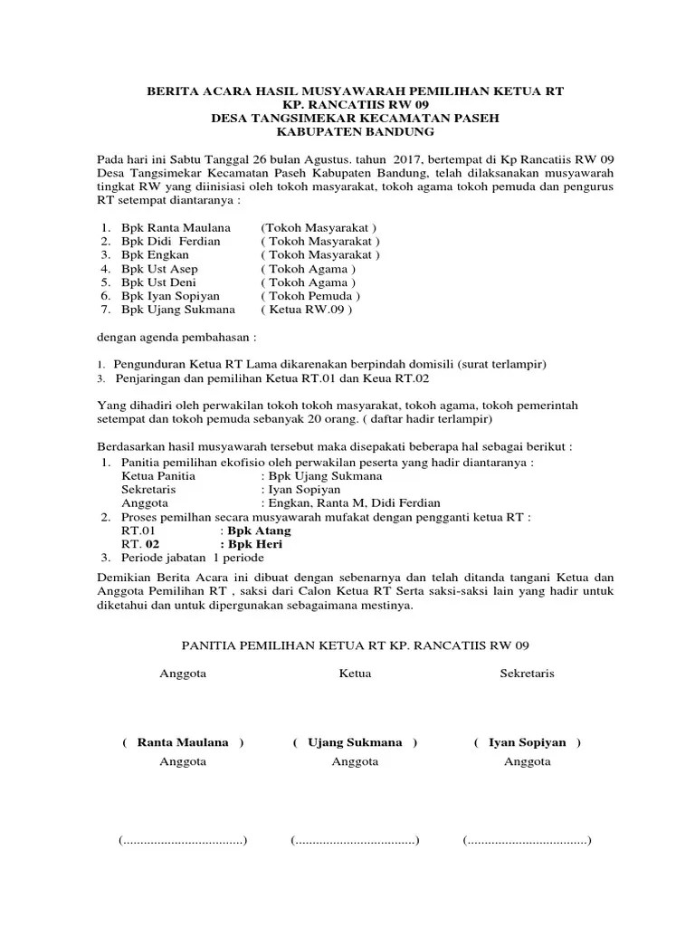 Contoh Surat Berita Acara Pemilihan Ketua Rt Secara Aklamasi Berbagai Contoh from imgv2-2-f.scribdassets.com Tenang saja, kita akan memberikan beberapa contoh berita acara yang bisa dijadikan bukti yang otentik di suatu kegiatan. Format contoh surat berita acara pemilihan ketua rt yang baik dan benar 2019. Berita acara pemilihan ketua rt. Berita acara hasil musyawarah pemilihan ketua rt rancatiis. 36 full pdfs related to this paper. A short summary of this paper. Kumpulan gambar contoh surat suara pemilihan rt terbaru 2019. By admin posted on december 24, 2020.